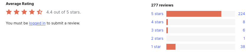 Smart Manager has a 4.4 out of 5-star rating on WordPress.org, based on 277 reviews.